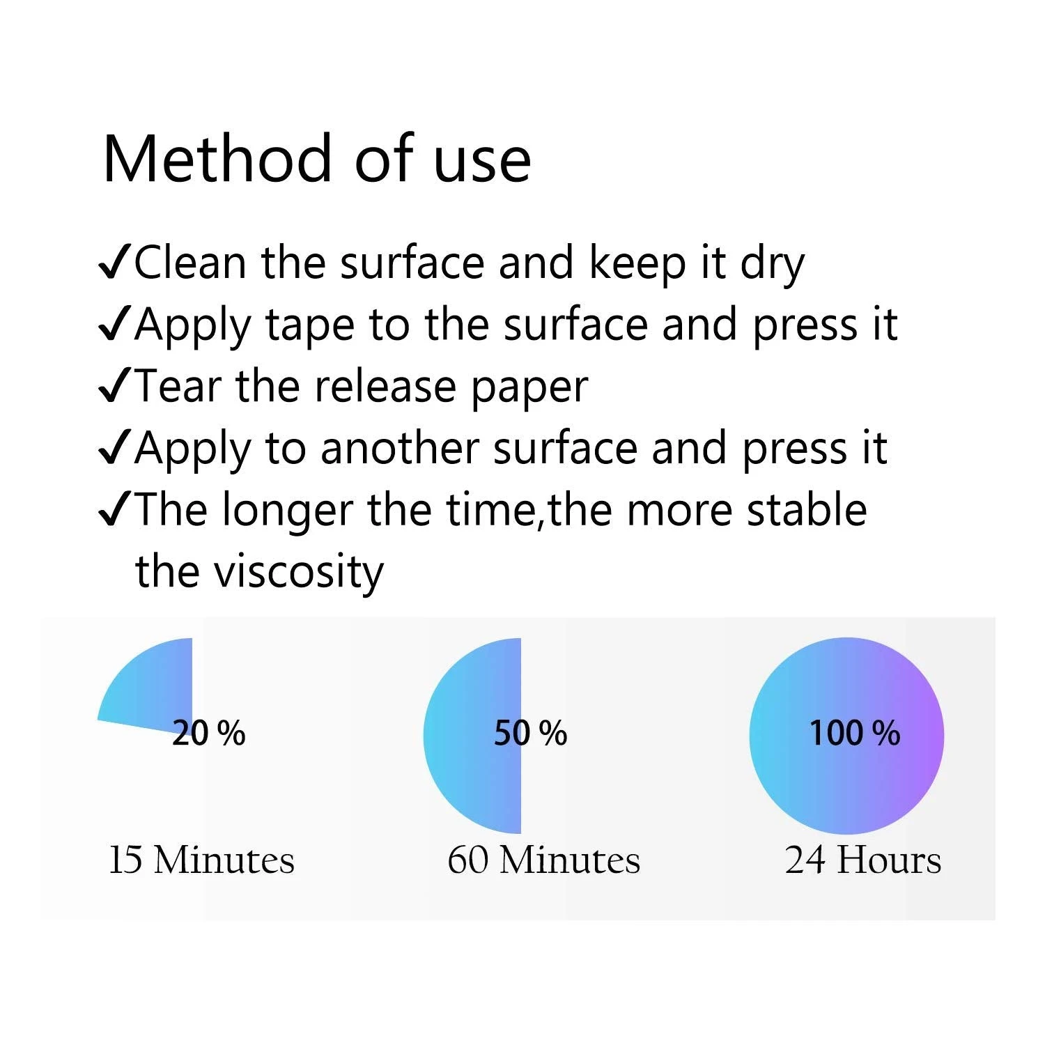50% strength of bond in 20 minutes, 90% strength of bond in 24 hours and 100% strength of bond after 72 hours