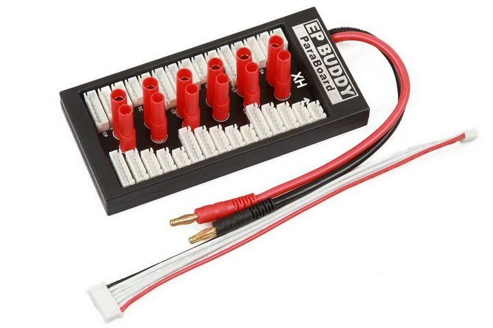 Use ParaBoard V2 to charge up to 6 batteries in parallel. This ParaBoard can be used for batteries with JST-XH type balance plug (the most popular type in the market) and 4mm connectors.