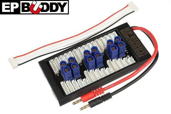 Use ParaBoard V2 to charge up to 6 batteries in parallel. This ParaBoard can be used for batteries with JST-XH type balance plug (the most popular type in the market) and EC5 connectors.