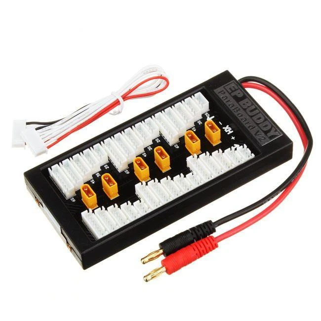 Use ParaBoard V2 to charge up to 6 batteries in parallel. This ParaBoard can be used for batteries with JST-XH type balance plug (the most popular type in the market) and XT30 connectors.