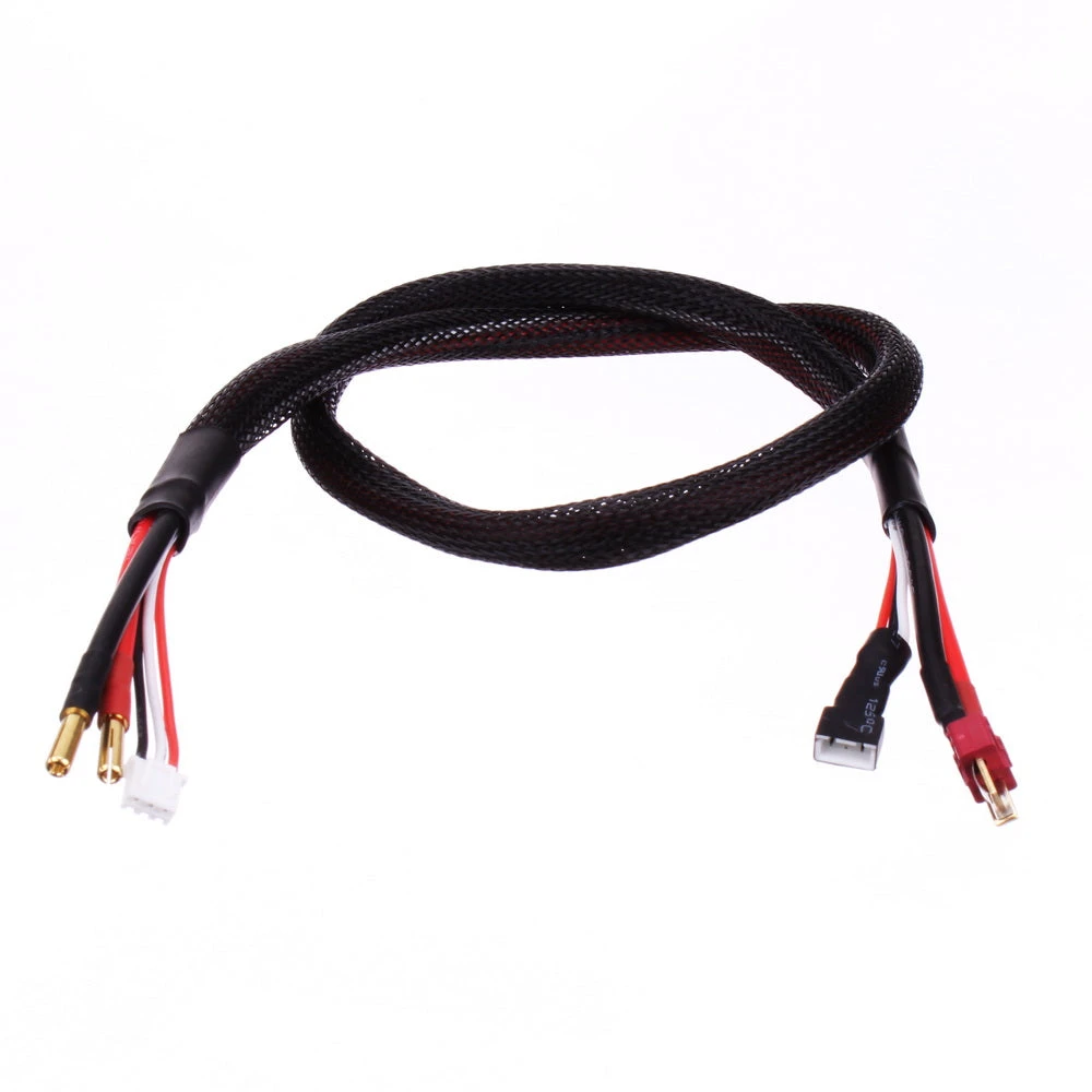 4mm male bullet connector on one end and T Plug on the other with 2s balance extension.