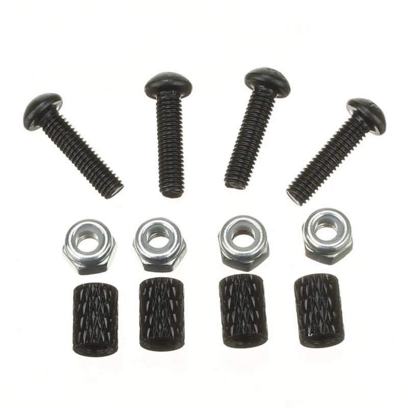 Aluminum standoff with abrasive finish for easy grip. Kit includes: 4ea M3 x 7MM Standoffs 4ea M3 screws 4ea M3 nuts