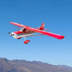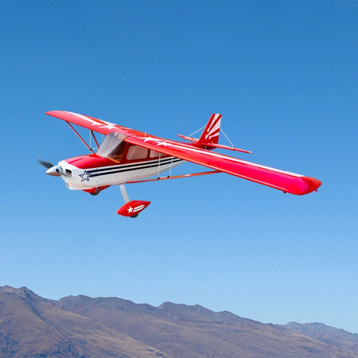 Equipped with aluminum landing gear and soft tires, this plane can take off from grassy surfaces without any trouble. You can take it anywhere and fly it with ease.
