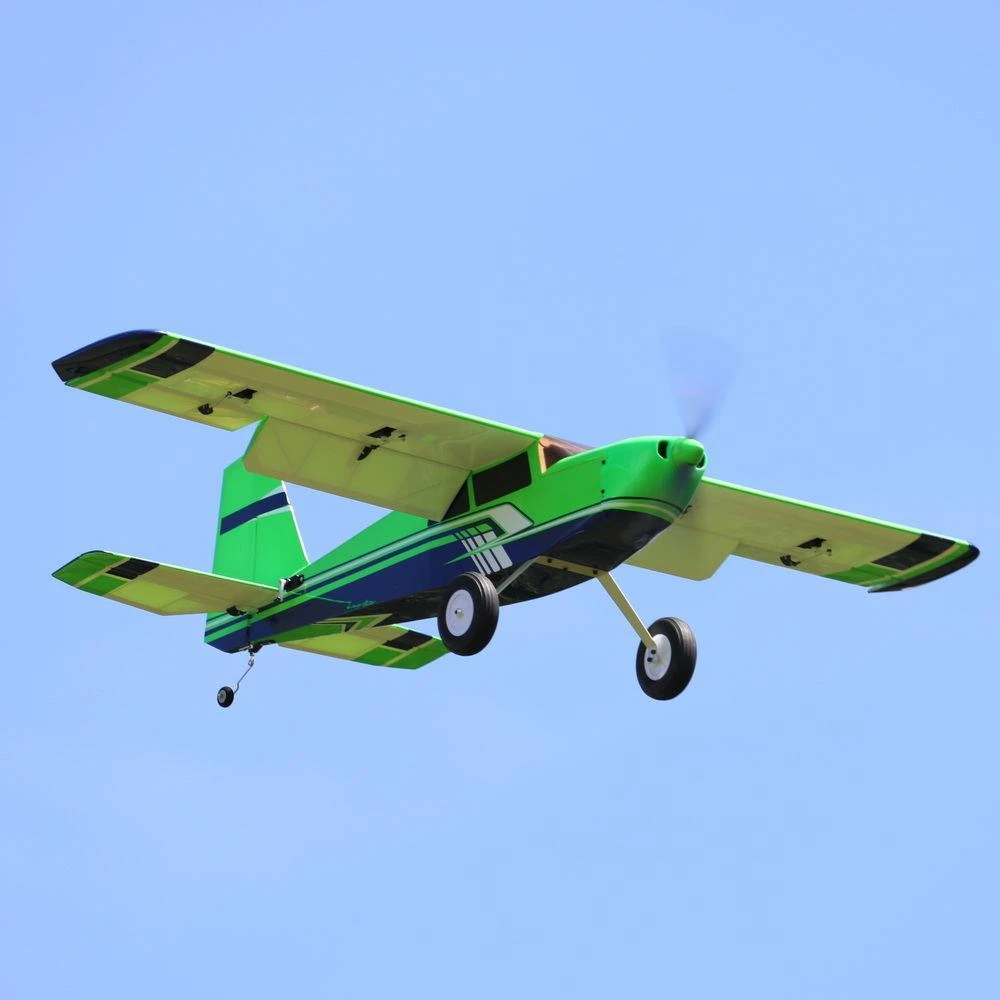 Equipped with aluminum landing gear and soft, large tires, this plane can take off from grassy surfaces with ease. You can take it anywhere and fly it without any limitations.