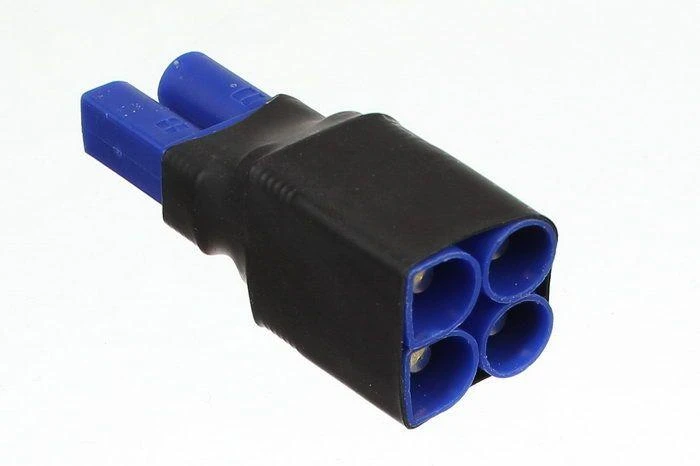 Use this adapter to connect two batteries with EC5 connectors in parallel to get highercapacity, yet the same voltage. For example, if two 6S 22.2V 5000mAh batteries connected in parallel with this adapter, it will be a 6S, 22.2V, 10,000mAh battery pack. Net weight: ~25g, 0.9oz.