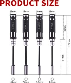 Hex Screw Driver Set Titanium Nitride Coated Tips 4pcs Tools Kit (1.5mm 2.0mm 2.5mm 3.0mm)