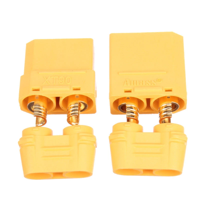 Genuine XT90 connectors made by Amass, the patent holder of XT60, XT90, and XT150 connectors, constructed with best materials. Those connectors without “Amass” logo on the plastic housing are illegal copies made of lower grade materials. This package includes two pairs of connectors. Each pair weighs 13 grams, ideal for application up to 90A.